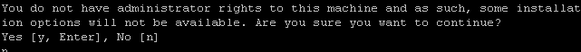 일반 권한으로 설치를 진행하면 아래와 같이 관련 안내문구가 나오게 된다.