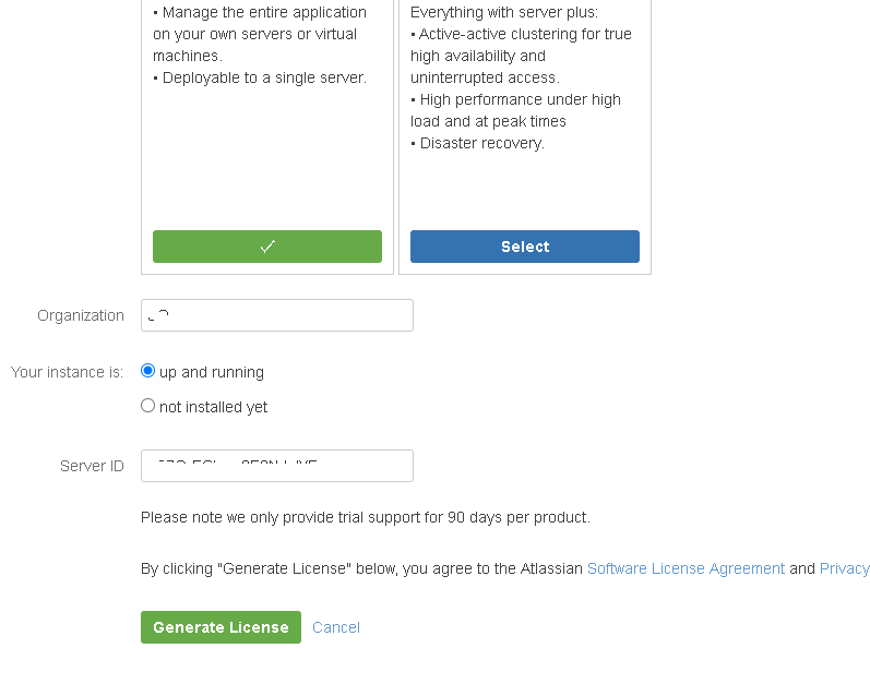 - 선택을 하면 초록색으로 변경되며 하단에 Generate License 버튼이 활성화되어 선택할 수 있다.